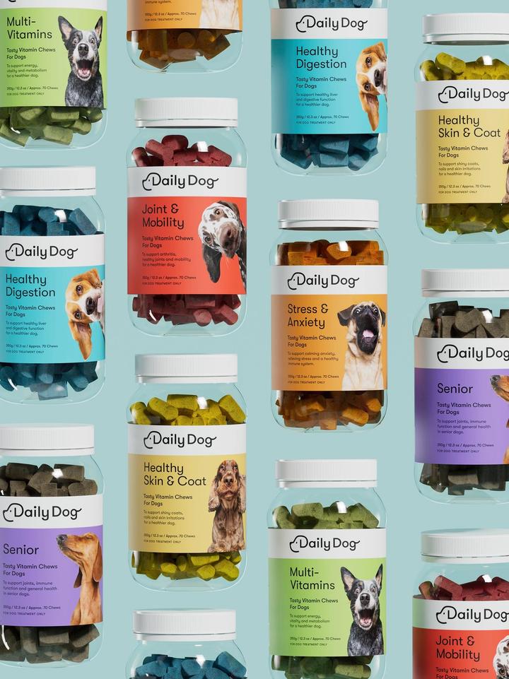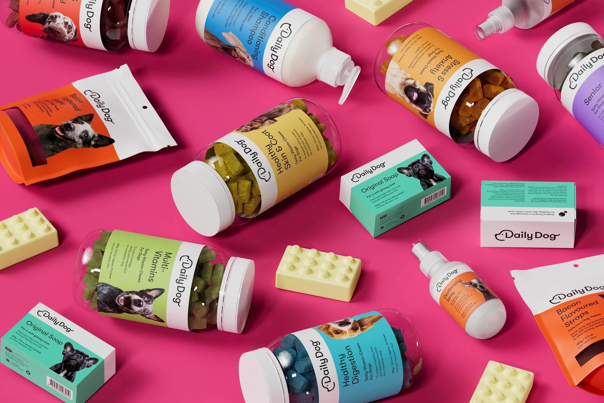Daily Dog is a dog wellness brand that looks after their wellbeing and reward their taste buds – every single day. We wanted to celebrate all the different colourful personalities your furry friend has through fun, personality driven dog photography and bright colours.