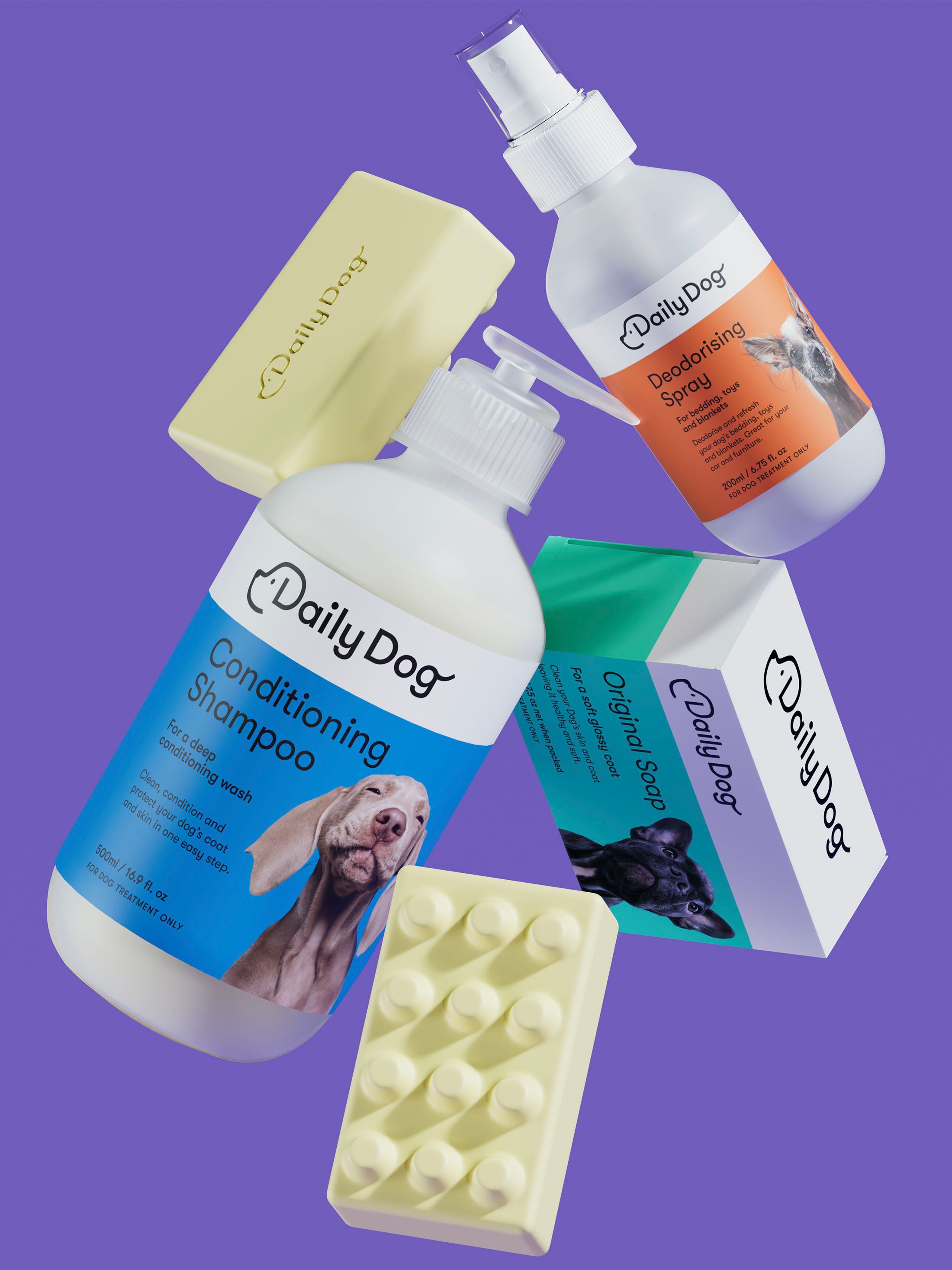 Daily Dog is a dog wellness brand that looks after their wellbeing and reward their taste buds – every single day. We wanted to celebrate all the different colourful personalities your furry friend has through fun, personality driven dog photography and bright colours.