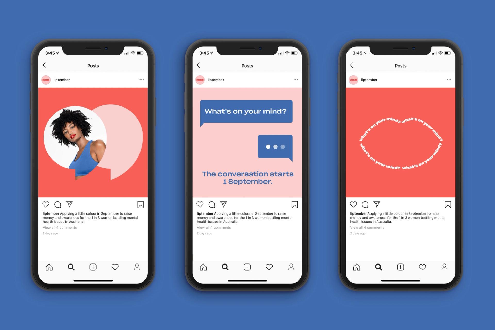 Liptember is a charity focused on creating awareness around women’s mental health, with funds raised by participants purchasing and wearing a colourful lipstick throughout the month of September. As they reached their tenth year of the campaign, the team approached Date Of Birth to evolve their brand to better capture and visually express exactly what Liptember represents — the need to spark conversations around women’s mental health.